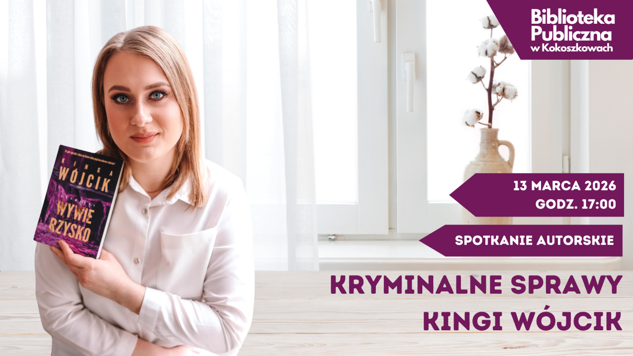 Zapraszamy na spotkanie z Kingą Wójcik – autorką, która zasłynęła serią kryminałów o komisarz Lenie Rudnickiej: Poryw, Spektakl, Osadzony, Szreń i Osuwisko, a także nową serią z detektywem Aleksandrem Zamojskim. Pisarka urodziła się w 1994 roku w Tomaszowie Mazowieckim, jest politologiem i absolwentką Uniwersytetu Łódzkiego. Pochodzi z rodziny policyjnej, dzięki czemu realistycznie i szczegółowo oddaje kulisy pracy śledczych w swoich powieściach